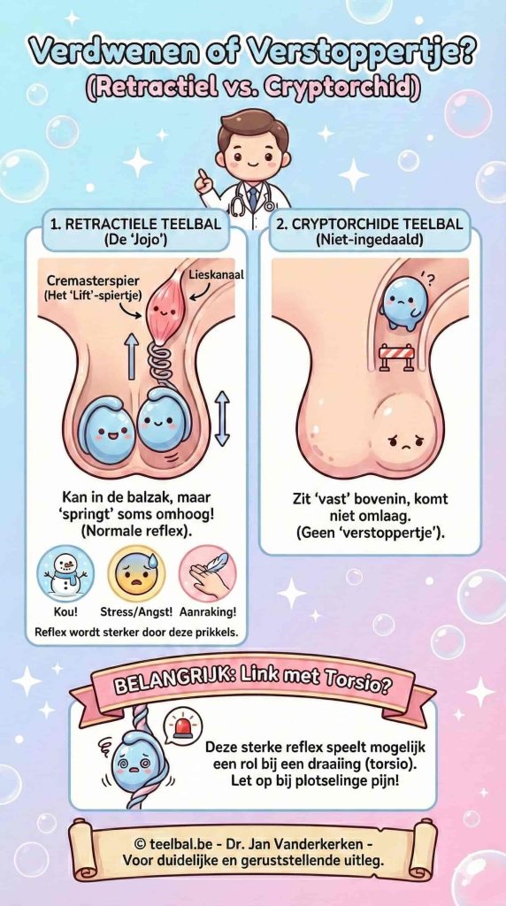Retractiele teelbal versus cryptorchide teelbal